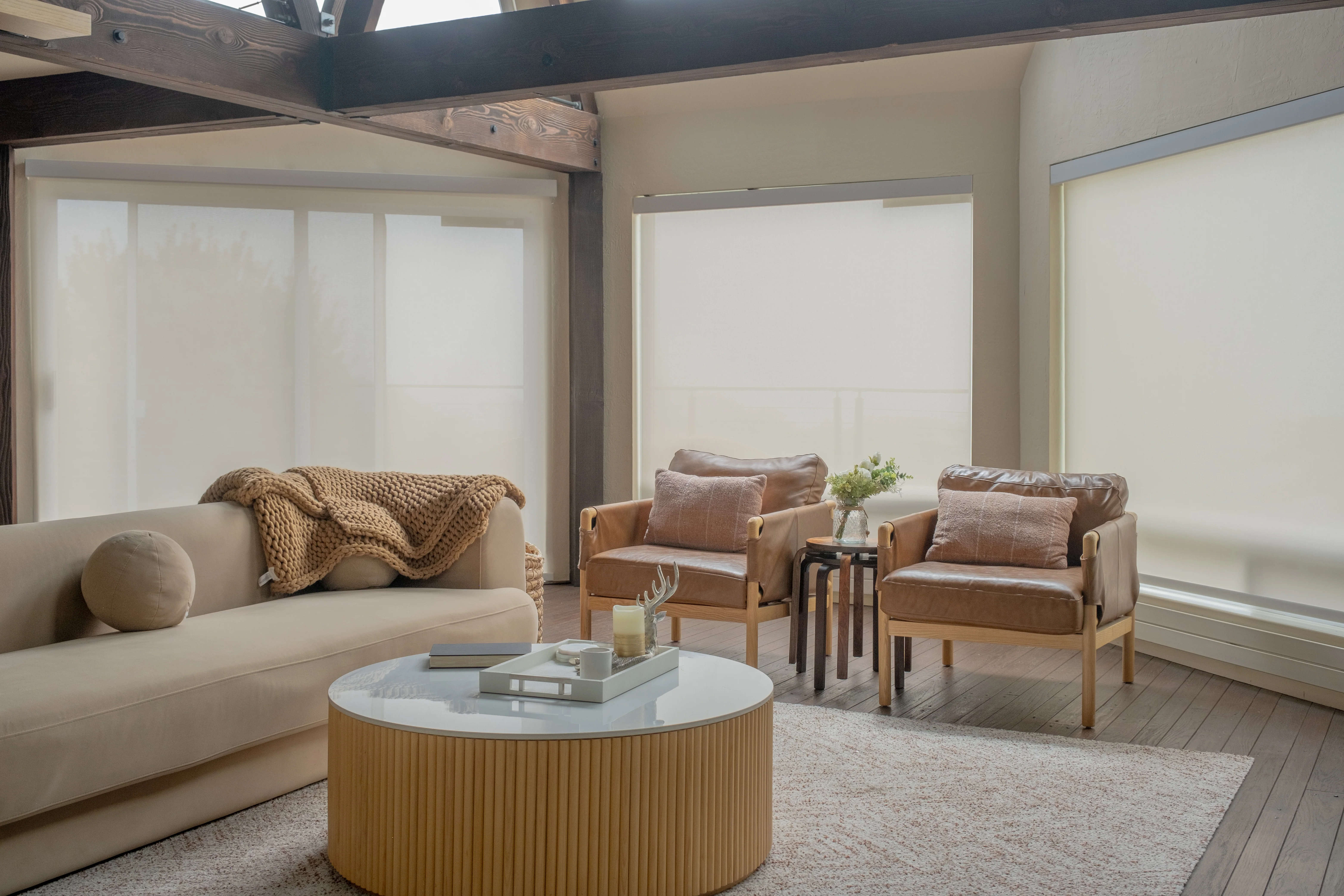 Upgrade your windows with our smart shades. Control light, privacy, and temperature with a tap or your voice. Integrate them seamlessly into your smart home for a truly connected living experience